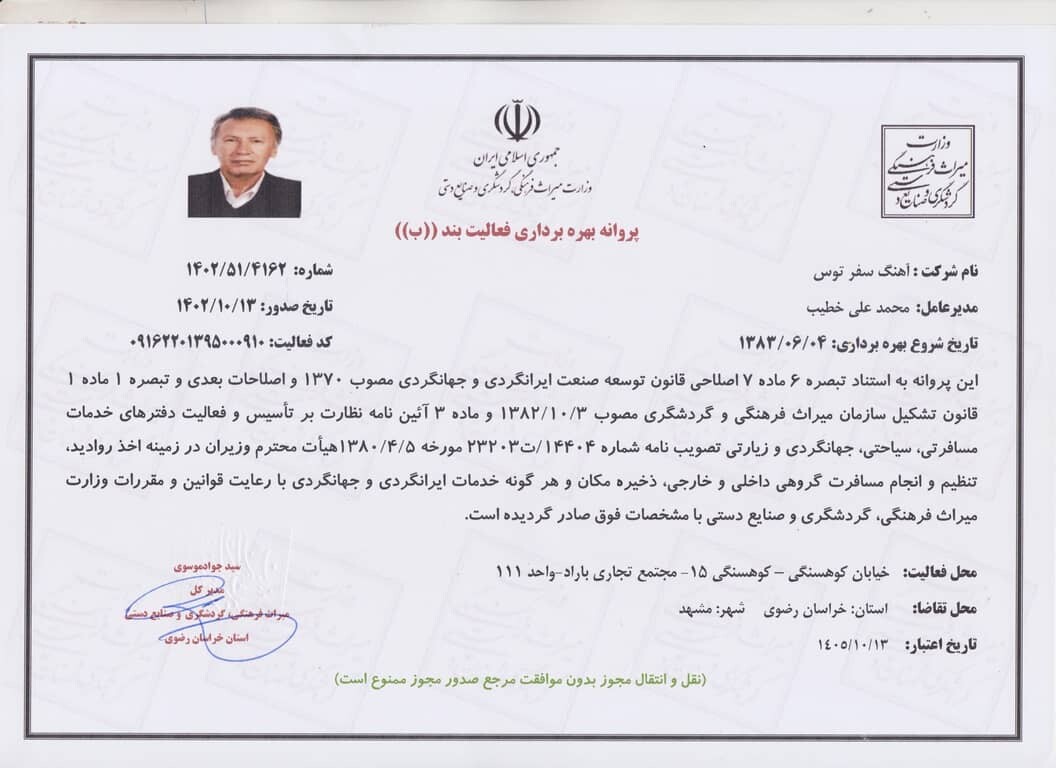 اطلاعات آژانس آهنگ سفر توس